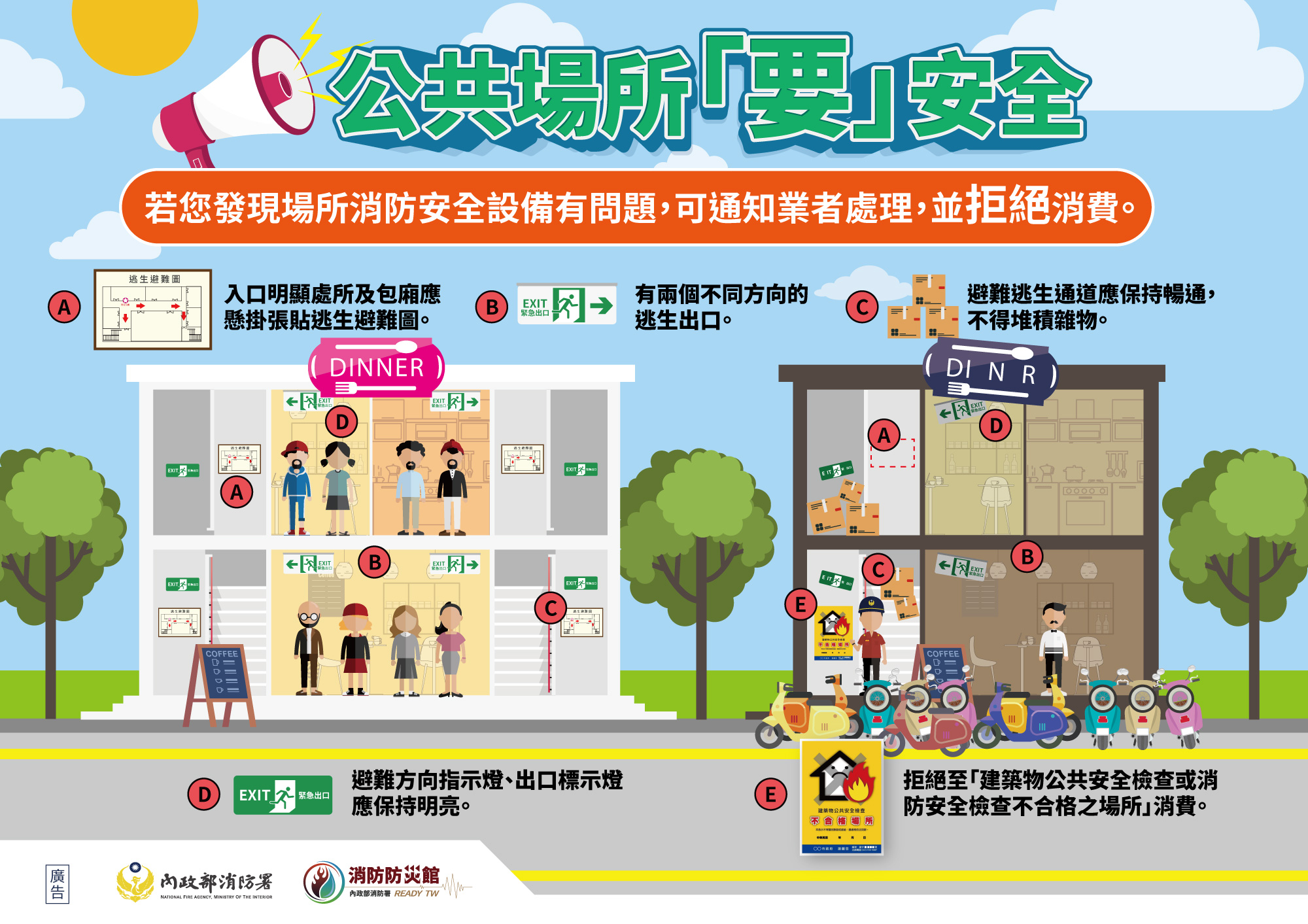 3、熟知家庭逃生計畫 1216 原則,災時採取正確應變動作:「畫出 1 張家庭平面圖」、「標示兩個不同方向的逃生出口及路線」、「設定 1 個屋外逃生集結點」、「每 6 個月進行逃生 演練」。