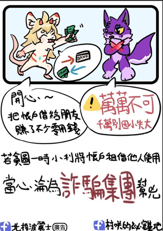 民眾應提高警覺,切勿輕易將個人帳戶存摺、金融卡提供給他人使用,以免捲入洗錢犯罪而觸法。