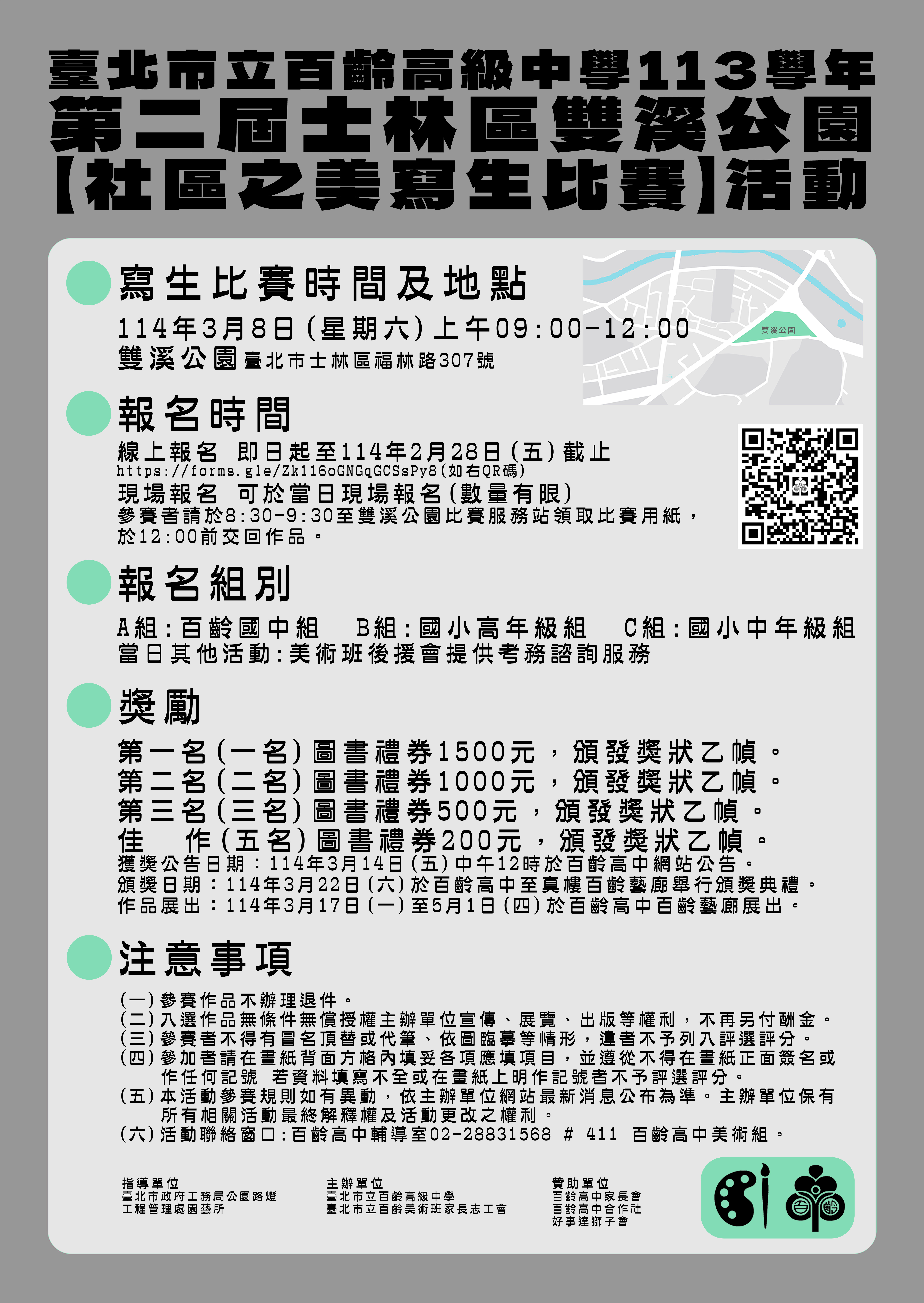 二、比賽地點:臺北市雙溪公園內(臺北市士林區福林路 307 號),若遇雨天照常舉行。