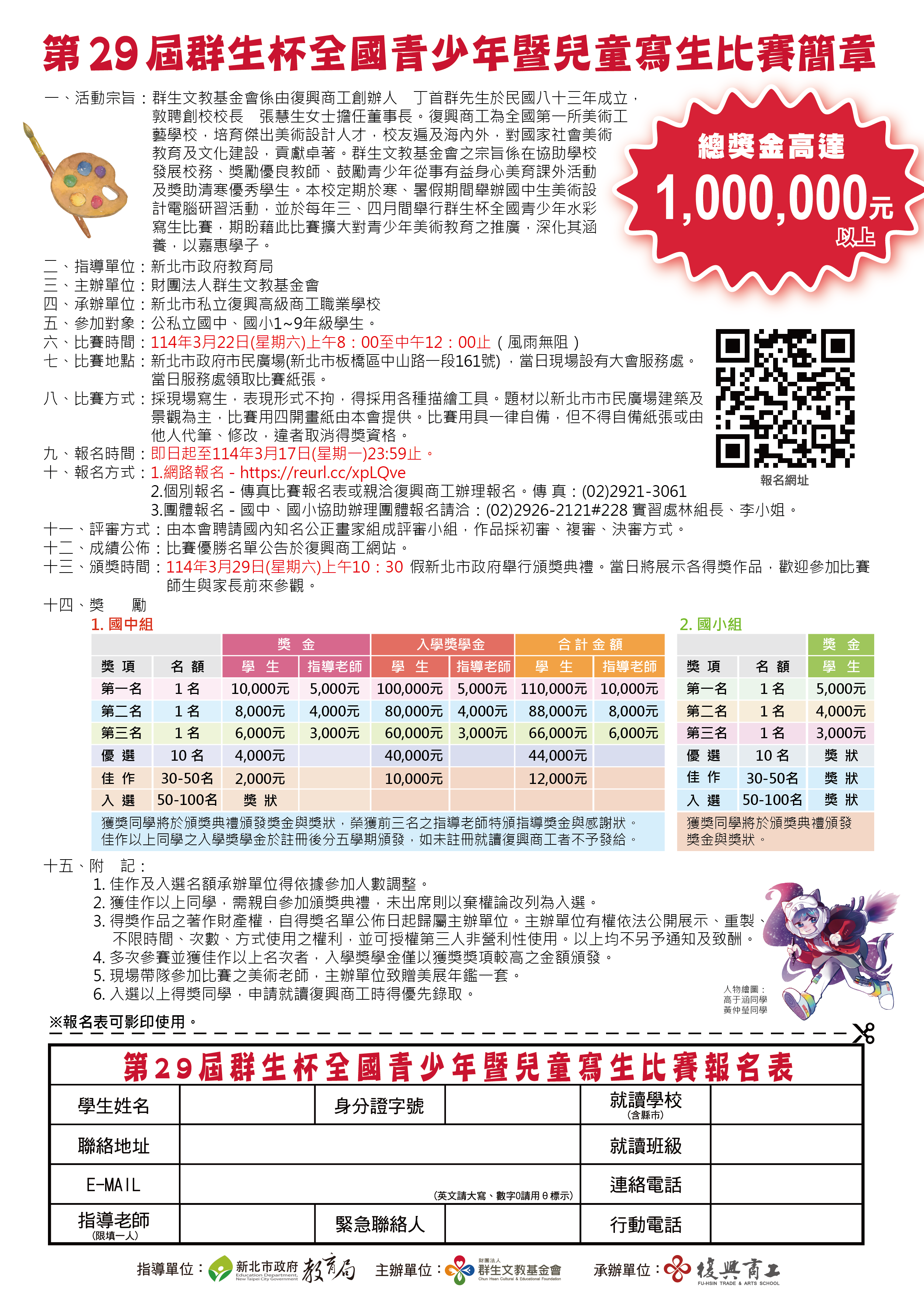 六、比賽簡章公告於 群生基金會網站首頁 http://ischool.fhvs.ntpc.edu.tw /ischool/publish_page/193/,敬請下載查閱。
