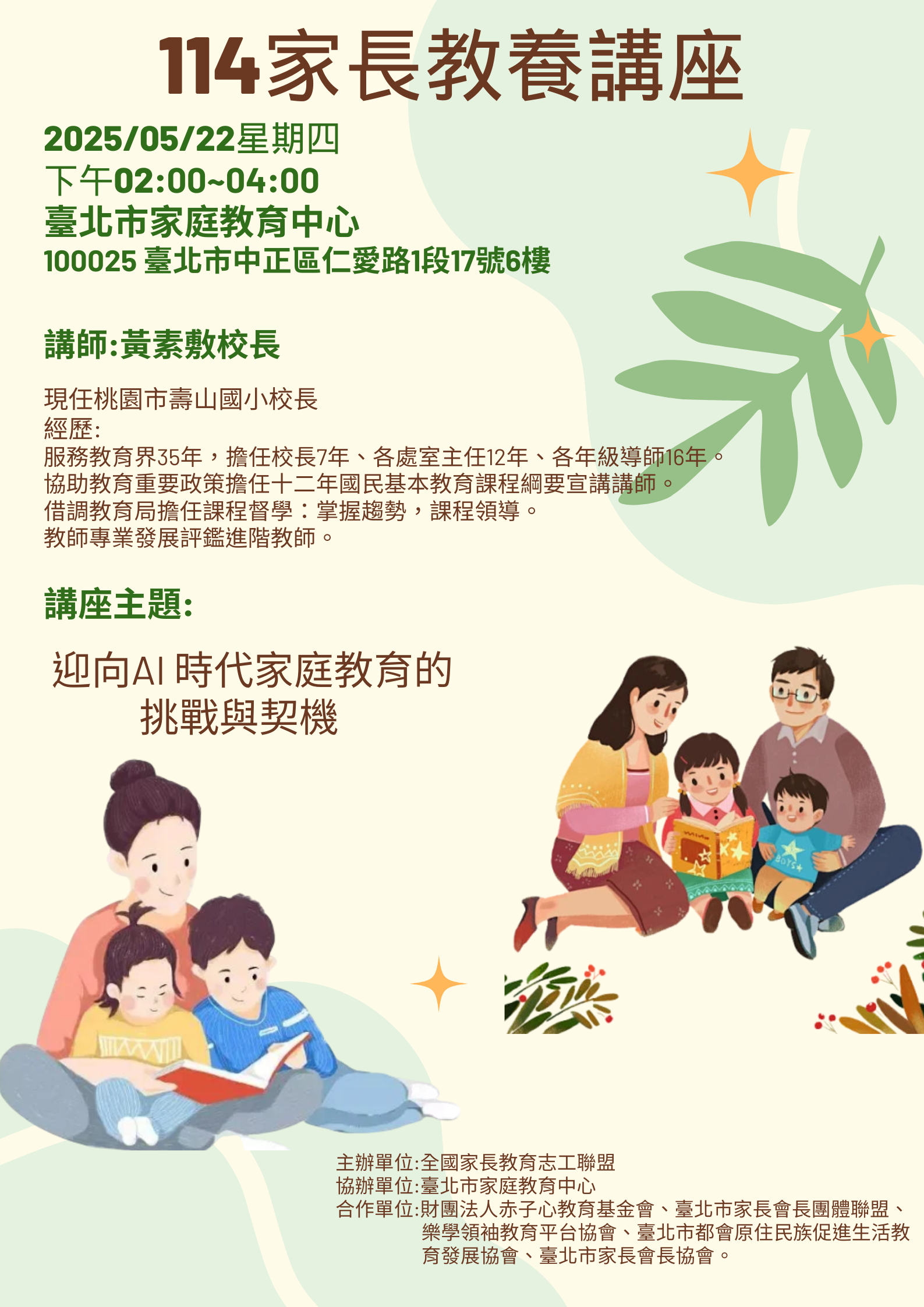 四、活動聯絡人:社團法人全國家長教育志工聯盟吳采翎秘書,電話:02-2388-2356。